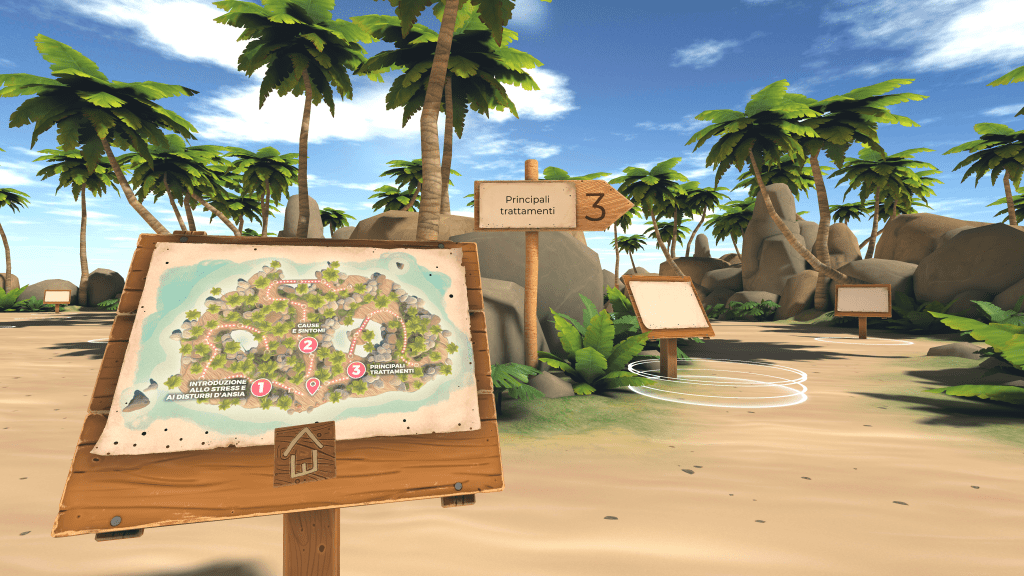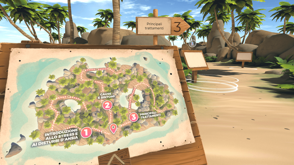 Ambienti virtuali offrono una varietà di esperienze di apprendimento situato diverse da quelle in una classe tradizionale o in un apprendimento basato sulla lettura di testi. Nella realtà virtuale, le persone possono costruire conoscenza attraverso l’interazione con oggetti ed eventi nel mondo artificiale (Chittaro & amp; Ranon, 2007; Gomes et al., 2020; Huang et al., 2010; Shin, 2017). Nonostante il ruolo importante che la realtà virtuale potrebbe svolgere nel fornire informazioni su condizioni di sofferenza mentale, solo pochi studi precedenti fino ad oggi hanno indagato le possibilità della realtà virtuale per la psicoeducazione (Migoya- Borja et al., 2020; Tielman et al., 2017). In questo contesto, l’obiettivo principale di MIND-VR è quello di sviluppare un’esperienza psicoeducativa virtuale immersiva che offra informazioni di base su stress e disturbi d’ansia, costruita seguendo un approccio UCD (User Centered Design).